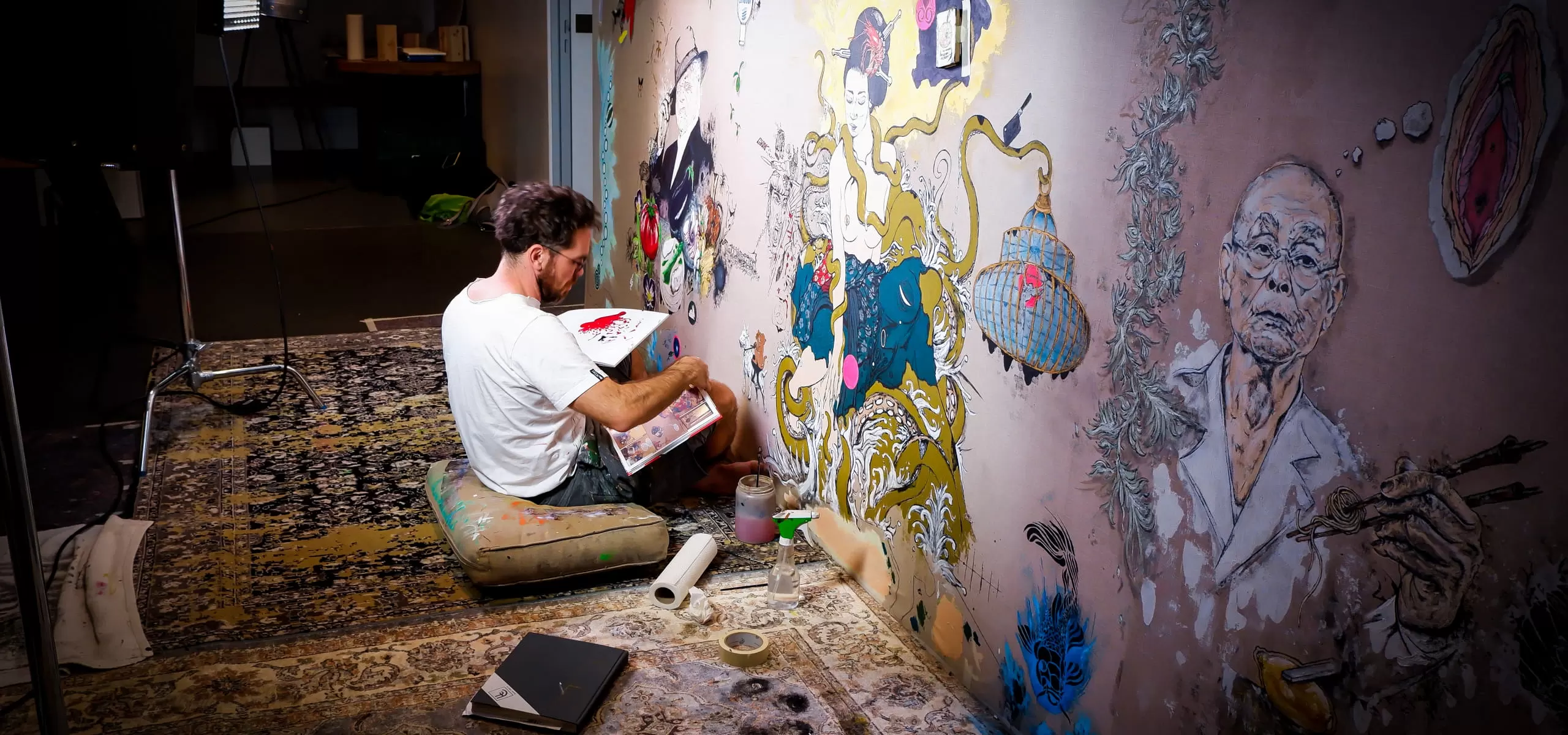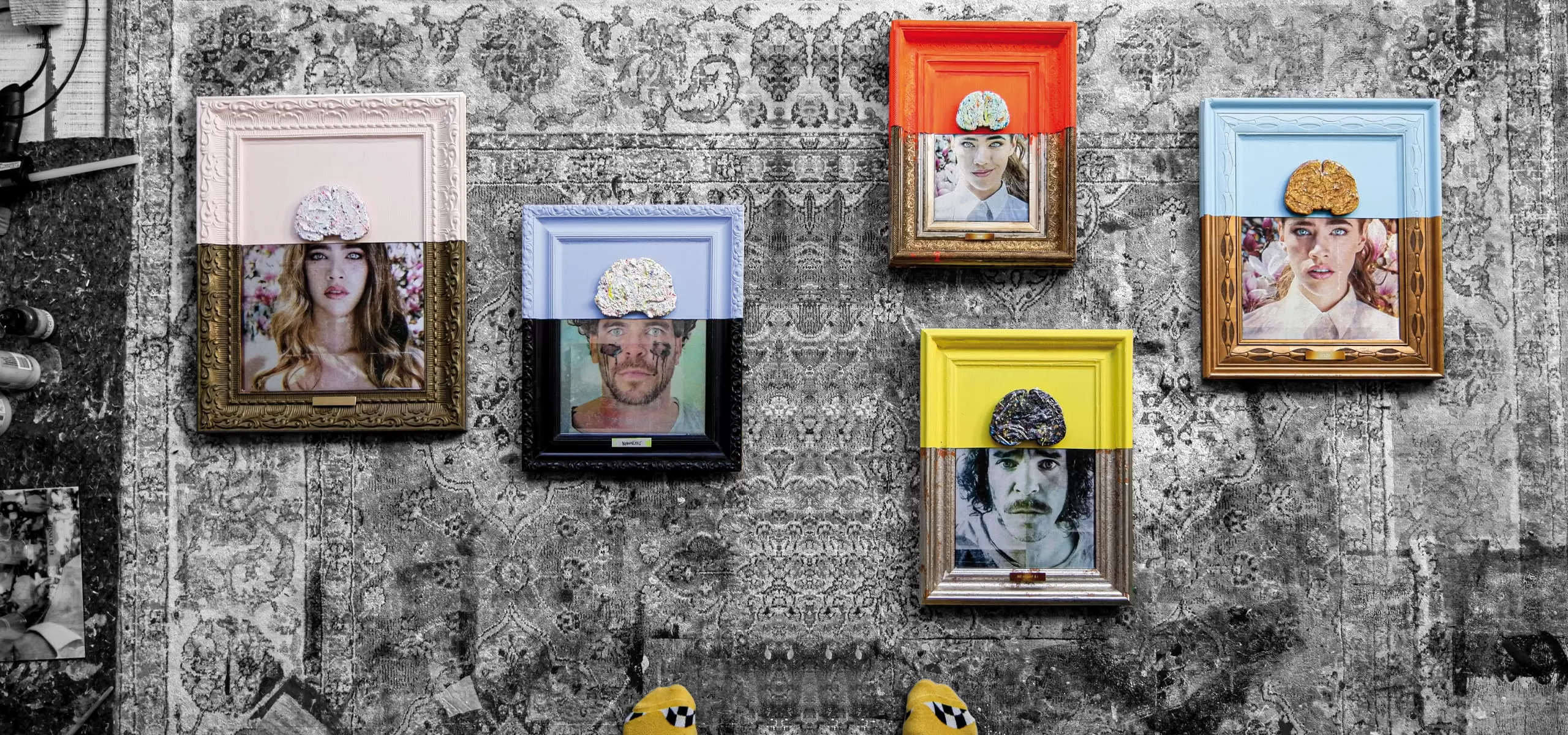 paper surfaces or canvases in kowalski’s paintings become spaces where contradictions, social criticism, and the security thinking of our sociocultural structure are consciously are displayed before the eyes. the works depict events and familiar moments from the media and pop culture, which, through mask-like, almost parodic exaggeration, have a humorous and thought-provoking effect. formal and purely visual elements are mentally or emotionally interconnected, similar to a novel or a narrative. much like a narrative, a painting sets boundaries and limits what we can add or interpret. due to different reasons i don’t like to leave backsides of paintings all blank, so i always put something special on the b-side of my artworks as well - adding sketches, collages, playful thoughts or simple facts about the main work. this creates an additional layer for the viewer and provides a deeper insight into my respective thought process.